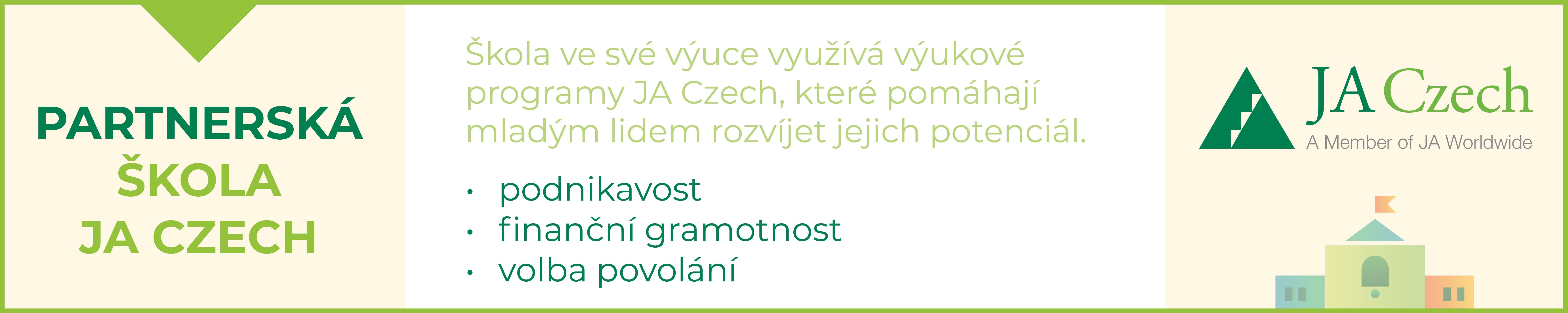 I tento školní rok spolupracujeme JA Czech, která je součástí mezinárodní neziskové vzdělávací organizace JA Worldwide. Jejím posláním je poskytovat mladým lidem praktické ekonomické vzdělávání, rozvíjet jejich znalosti a dovednosti, inspirovat je a podporovat v aktivním přístupu k životu, aby se dovedli prosadit a úspěšně uplatnit a byli dobře připraveni pro vstup na trh práce.