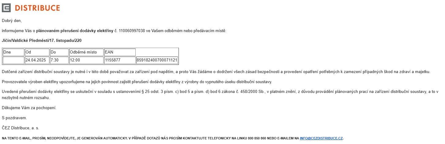 Změna termínu praktické maturitní zkoušky z IT - odstávka elektřiny