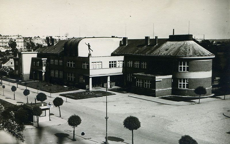 Dostavěna budova školy, název Masarykova veřejná obchodní škola města Jičína