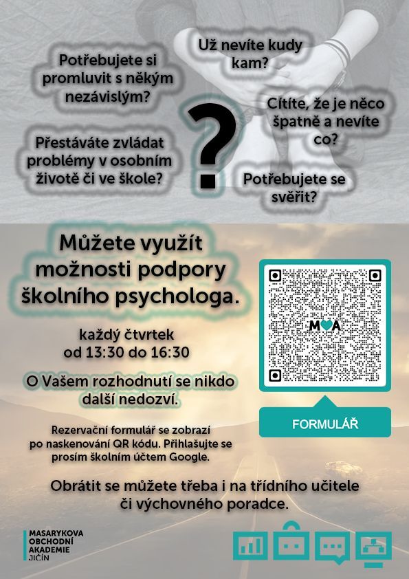 Na škole působí odborně způsobilý psycholog Mgr. Gabriela Prodělalová, která je studentům školy v případě potřeby dispozici.