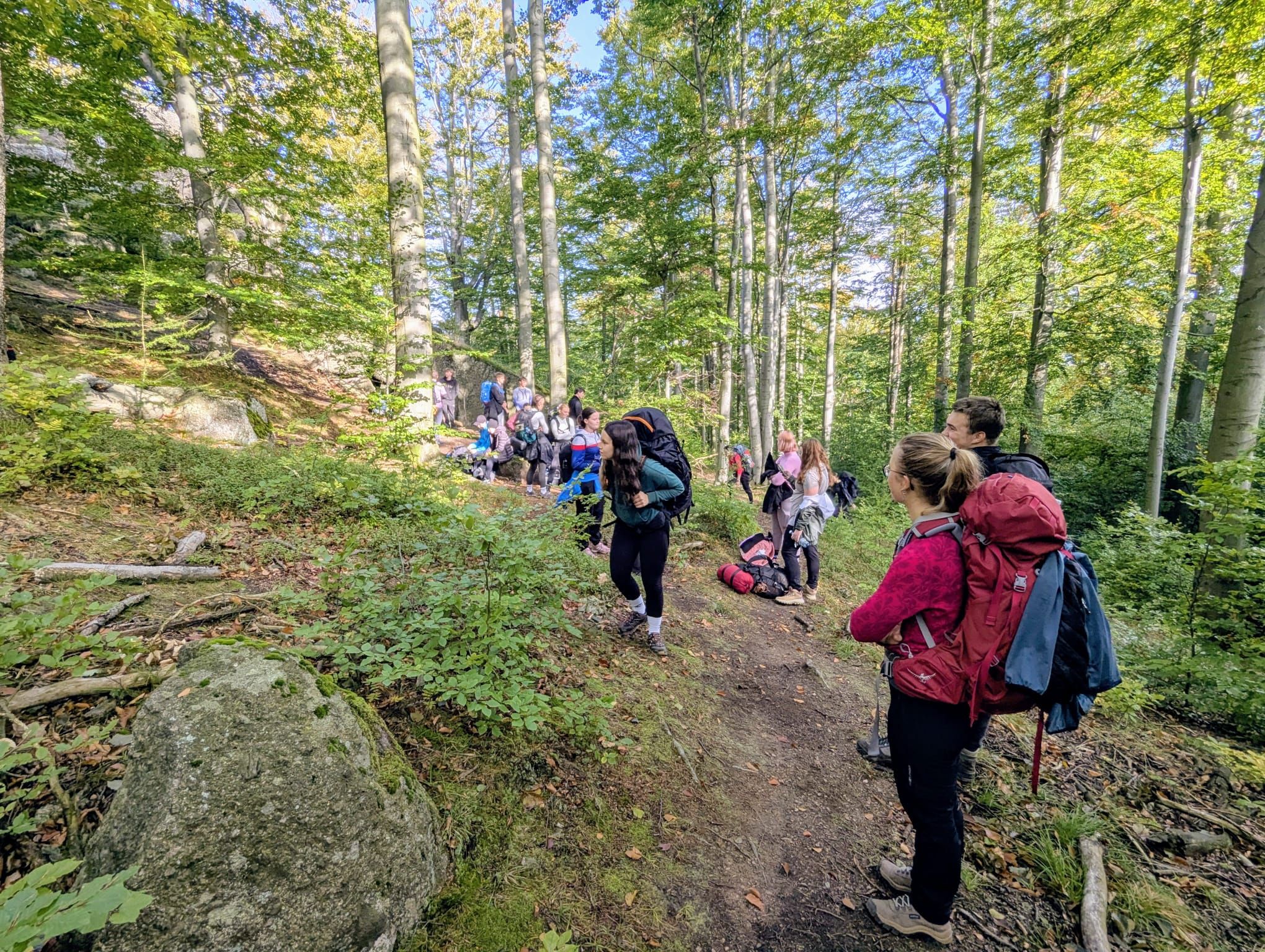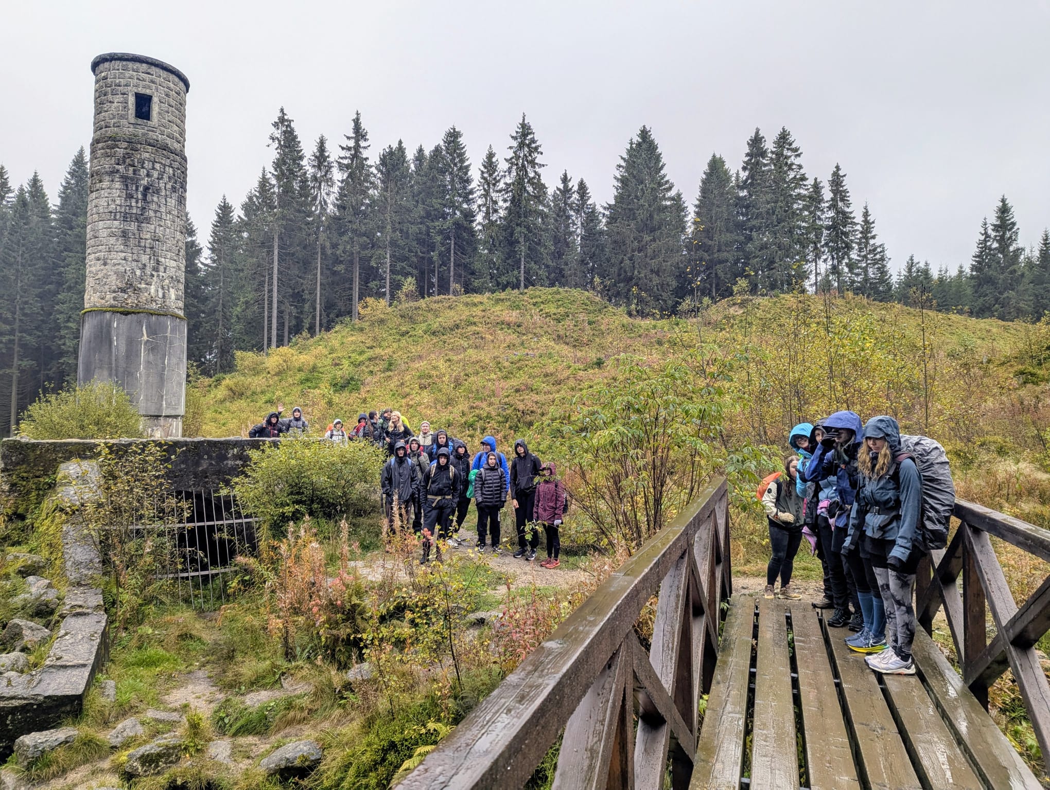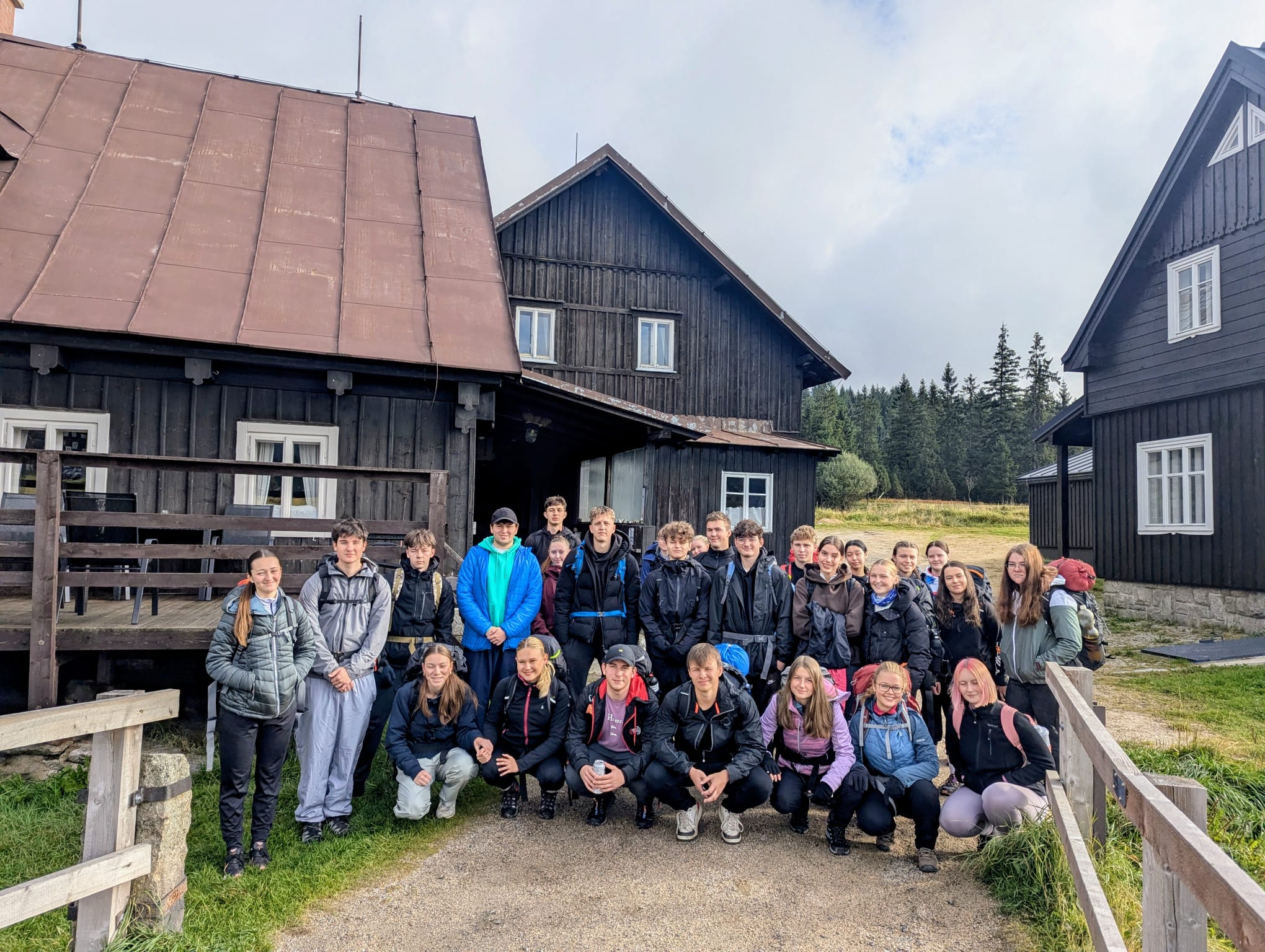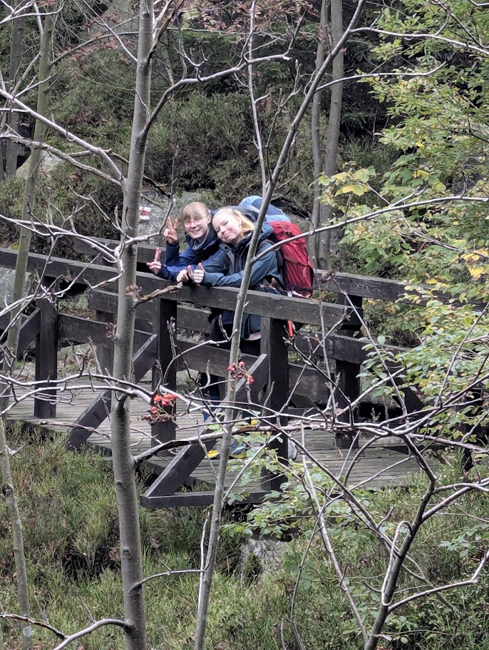 Vlakem jsme jeli do Tanvaldu, kde začala pěší část naší cesty. Trasa vedla přes Tanvaldský Špičák, kolem Protržené přehrady až na Jizerku, kde bylo zajištěno první nocování. Ušlá vzdálenost byla nečekaných 23 km.